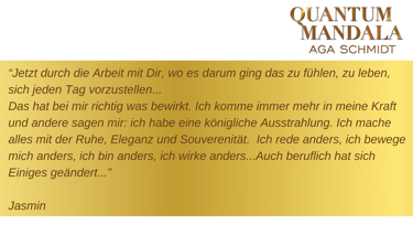 Durch die Schattenarbeit und ihre Manifestationstools habe ich mich in nur wenigen Wochen so stark verändert, dass ich kurz darauf meinen jetzigen Partner gefunden habe – und wir sind bis heute glücklich zusammen.