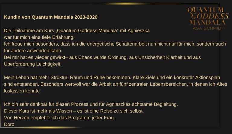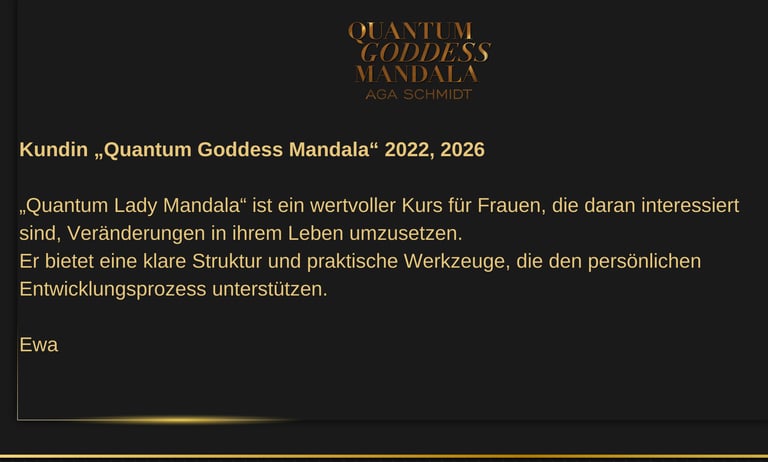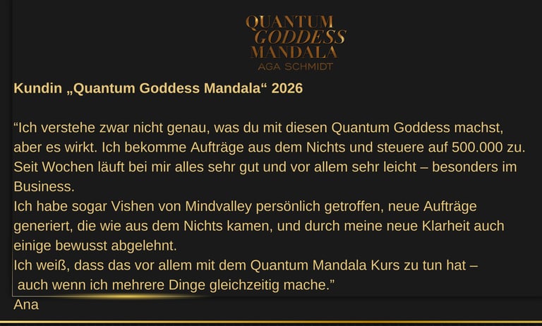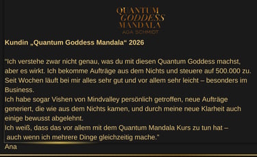 Einige unserer Kundinnen von Quantum Mandala haben ihre Traumbeziehung verwirklicht oder deutlich mehr finanziellen Erfolg in ihr Leben gebracht.